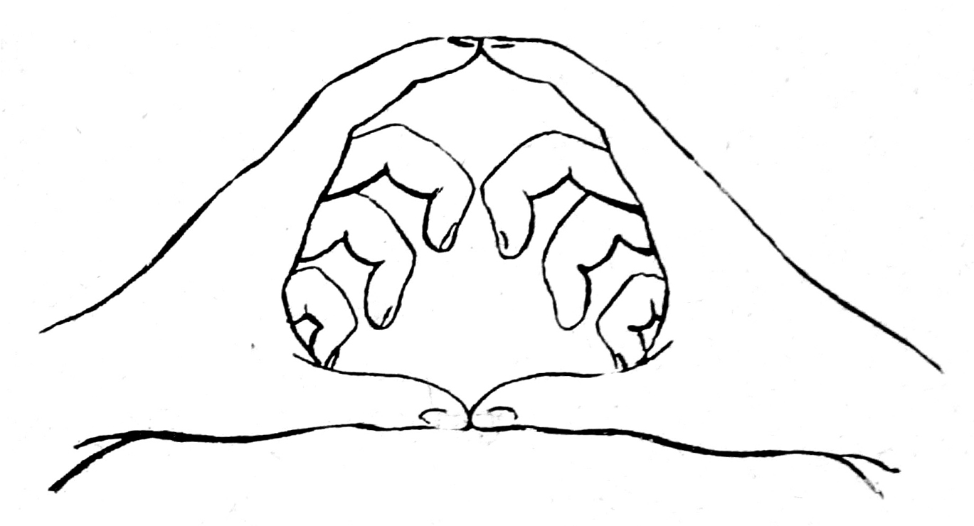 Уже самое это обилие формул показывает, что проблема пропорций не может считаться до настоящего времени разрешенной, хотя нельзя отвергать и того положения, что эти пропорции все же существуют и, как нечто реальное, имеют место в человеческом организме. Мы с своей стороны задались целью установить соотношения между фигурой входа в малый таз и фигурой, образованной кистями рук в известном положении пальцев (рис. 1 и 2).
