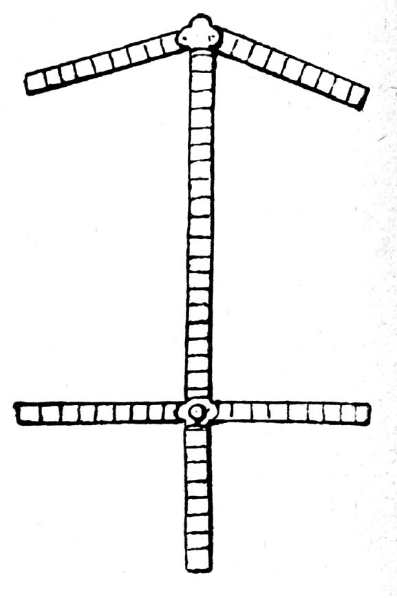 Считаем нелишним указать, что при измерении могут получиться несколько иные данные. Изображенная на рис. 6 геометрическая фигура, полученная тем же способом, как и на рис. 5, имеет иную форму, т. к. при измерении оказалось, что цифра, выражающая длину двух суставов указательных пальцев, больше длины двух суставов больших пальцев.