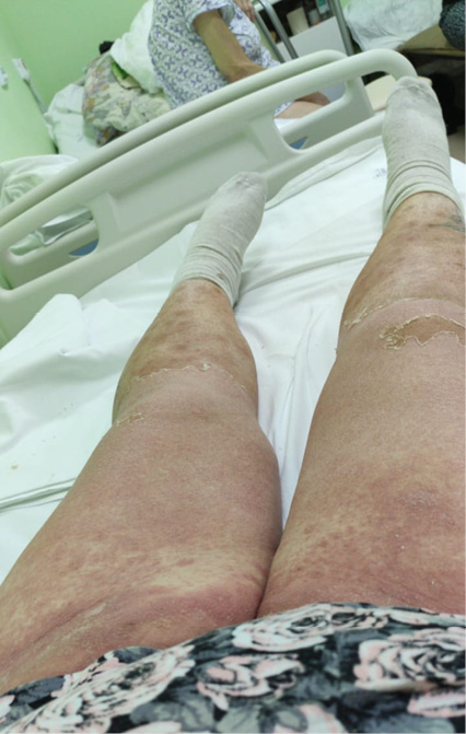 Рис. 3. Пациентка Г.И.Ф. Диагноз: «Эксфолиативный дерматит». Поражение кожи ног