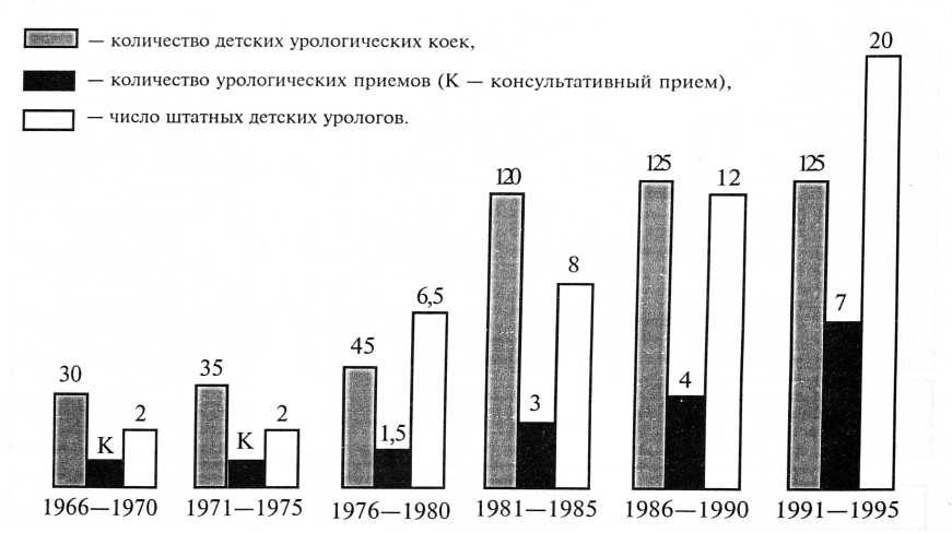 1 Прим. ред. В 1960—1970 гг. в периоде становления детской урологической службы в РТ урологическая помощь детям оказывалась параллельно и во взрослых урологических стационарах.