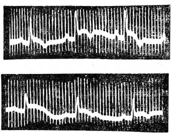 Внизу — после раздражения (100 мм рт. ст.—60").
