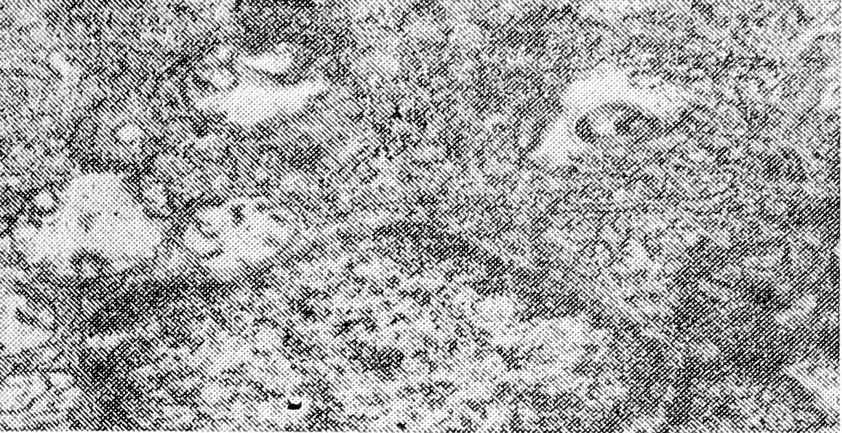Рис. г — слабая активность щелочной фосфатазы в капиллярах коркового вещества вилочковой железы, выявленная у больной Ф. 7 лет. Тетрада Фалло. Реакция с прочным синим РР. Х 100;