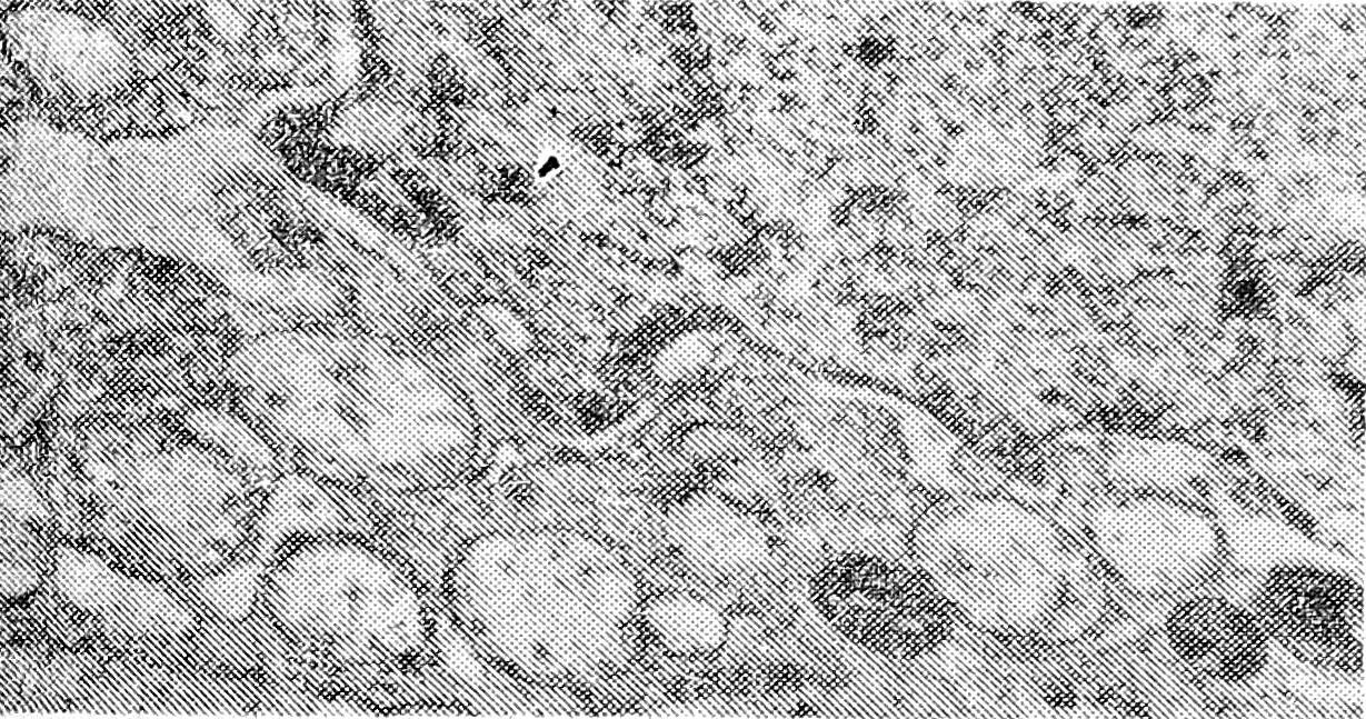 Рис. в — электронограмма больной Ш. 6 лет. Видна клетка ретикулоэпителия с явлениями перинуклеарного и околоядерного отека. Тетрада Фалло, открытый артериальный проток. X18000;