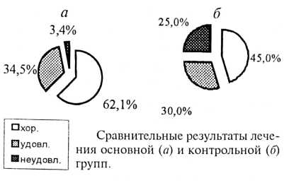 Рисунок 1. Сравнительные результаты лечения основной (а) и контрольной (б) групп