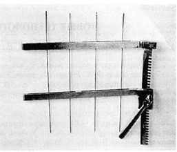 Получил также применение СпАРА упрощенной конструкции с прямыми цельными браншами с гладкой поверхностью [23]. Разведенные бранши подводят под концы спиц и производят СбКР. Однако гладкие бранши не позволяют оставлять СпАРА на длительное время, так как возможно его соскальзывание. Для исключения этого недостатка нами предложен СпАРА, бранши которого выполнены съемными, рабочая поверхность их имеет поперечные прямоугольные канавки, способствующие ориентации и предупреждающие смещение спиц по плоскости. Длину бранш подбирали в зависимости от размеров раны. Методика наложения подготовленного СпАРА не имеет принципиальных отличий от таковой при использовании предыдущих моделей.