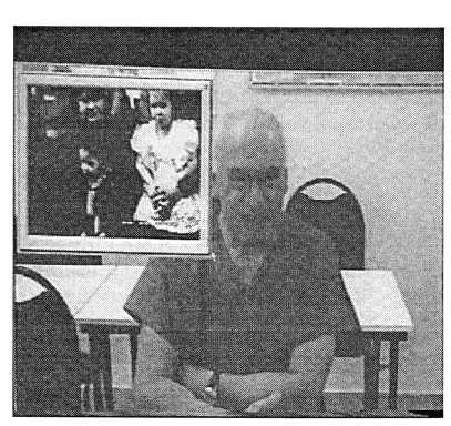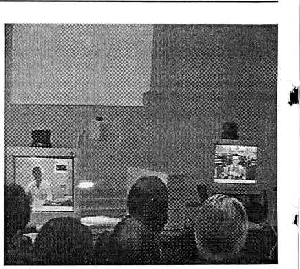 Рисунок 1. Изображение получено на экране в МКДЦ 6 марта 2001 г.: акад. Л.А. Бокерия, находящийся в Москве в НЦ ССХ им. А.Н. Бакулева (основной экран), консультирует детей, которых он оперировал в г. Казани в ДРКБ месяц назад (малый экран).