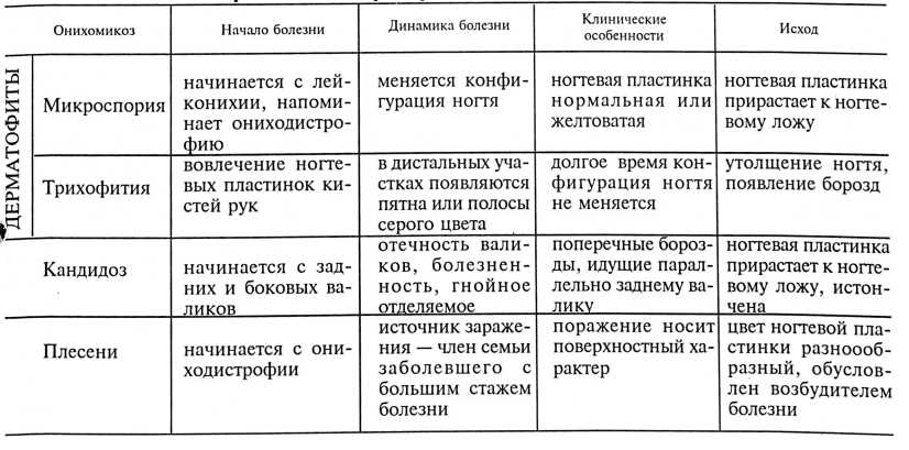 Таблица 1. Сравнительная характеристика онихомикозов у детей