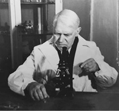 Рис. 2. Профессор А.Э. Озол за работой с микроскопом