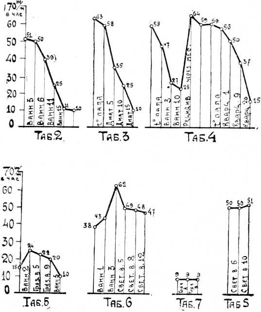 I. Больная M., 42 лет. Диагноз Polyarthritis chronica récidiva et nephr.- nephrit. Давность суставного заболевания 3 года. Поступила в клинику 12/1Х 26 года, обострение 3 месяца, суставные симптомы в области суставов верхних и нижних конечностей, температура 37°—37,2°, клинические симптомы со стороны почек, SR—50 мм. в час. У больной после 12 сеансов световых полуванн явления со стороны суставов исчезли, почечные симптомы дали незначительное улучшение, SR—51 мм. Графически течение SR изображено на табл. № 8.