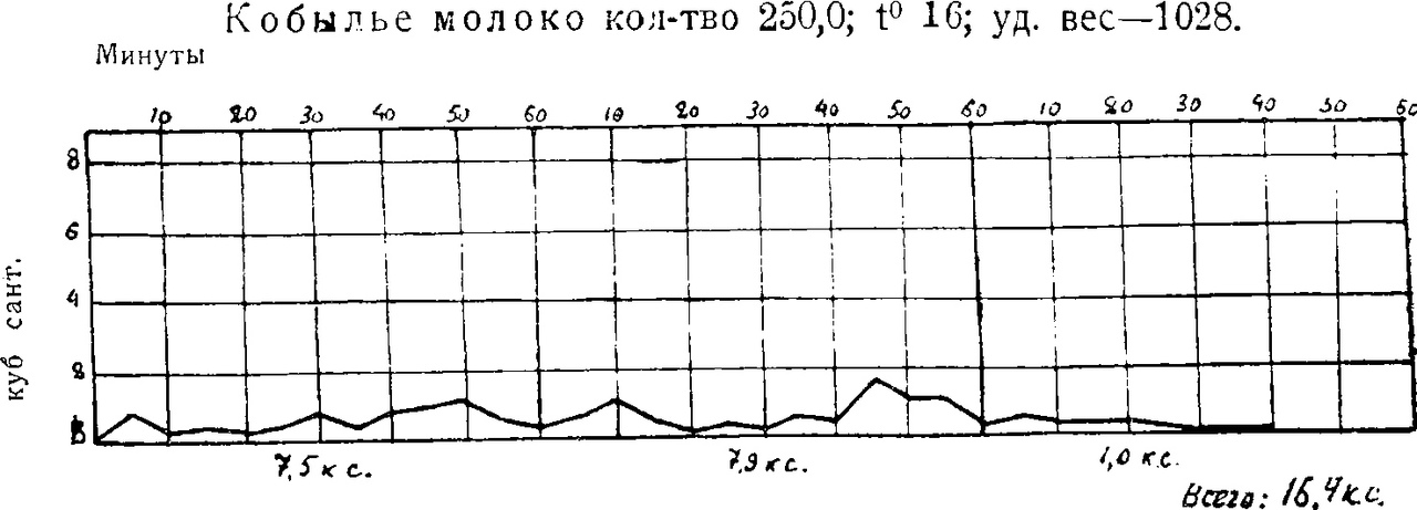 Кумыс вырабатывался в собственной куммастерской из молока са­наторских кобылиц и приготовлялся на закваске, полученной из Оренбург. Бакт. Ин-та (b. bulgaricus, torula kumys); приготовление кумыса про­изводилось под постоянным наблюдением лаборатории санатория. По вку­совым, физико-химическим и бактериологическим свойствам кумыс был хорошего качества и удовлетворял всем существующим современным тре­бованиям кумысолечения. Кумыс давался больным в первые месяцы (май—июль) 4—5 бутылок и в последние месяцы 4—3 бутылки в день на человека.