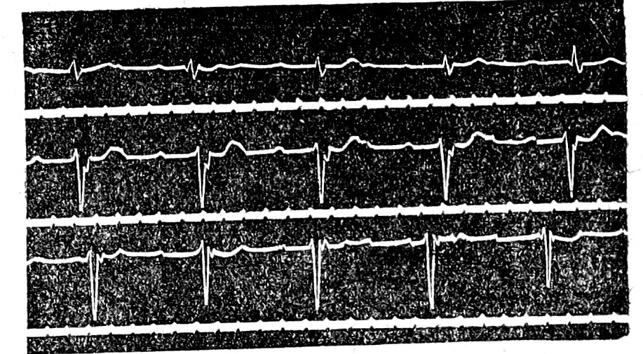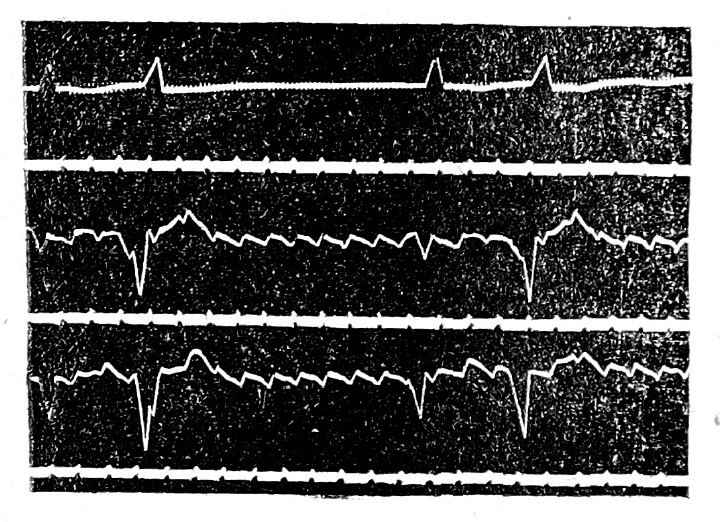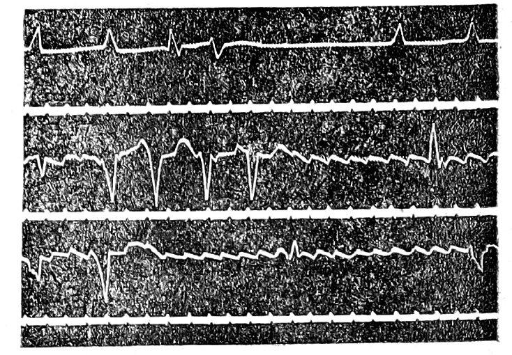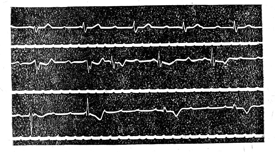 Die Verfasser beschreiben einen Fall der Koro narthrombose mit der mannigfaltigen Rhytmusstörungen.