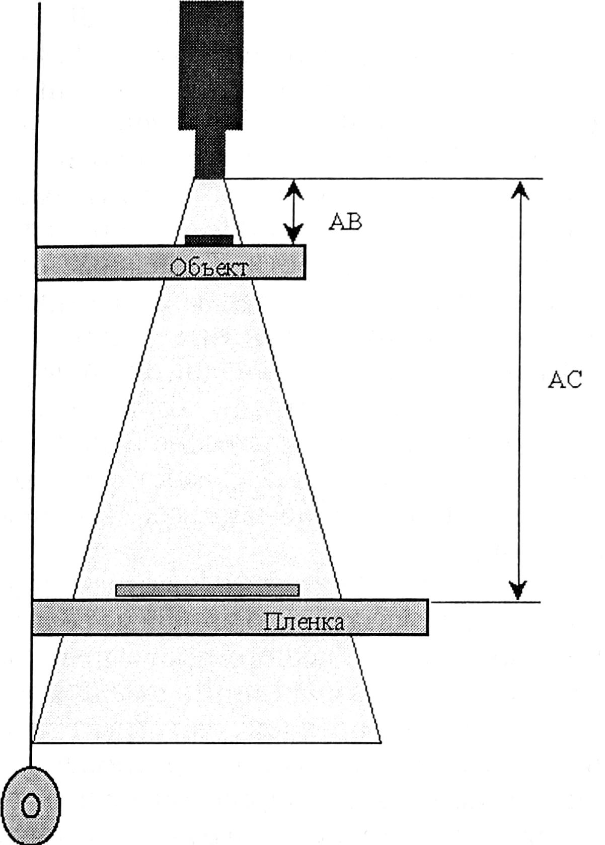 Установка расстояний “фокус- объект” и “фокус-пленка” для получения необходимого масштаба увеличения на всех типах микрофокусных аппаратов представлена на рис. 1.