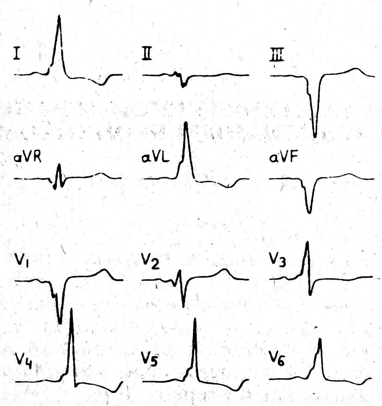Наличие феномена WPW может создавать трудности в ЭКГ-диагностике инфаркта миокарда, имитируя или маскируя признаки этого заболевания. В частности, отрицательная А-волна может имитировать патологические зубцы Q и QS во II, III, AVF или правых грудных отведениях, приводя к ошибочной диагностике инфаркта миокарда нижней или переднеперегородочной локализации. При так называемом типе А феномена с положительной A-волной (см. рис. 1) в правых грудных отведениях иной раз ошибочно диагностируется заднебазальный инфаркт миокарда. Автору статьи пришлось консультировать беременную женщину 24 лет, у которой наличие отрицательной A-волны в отведениях II, III и AVF послужило поводом для срочной госпитализации с диагнозом «инфаркт миокарда».