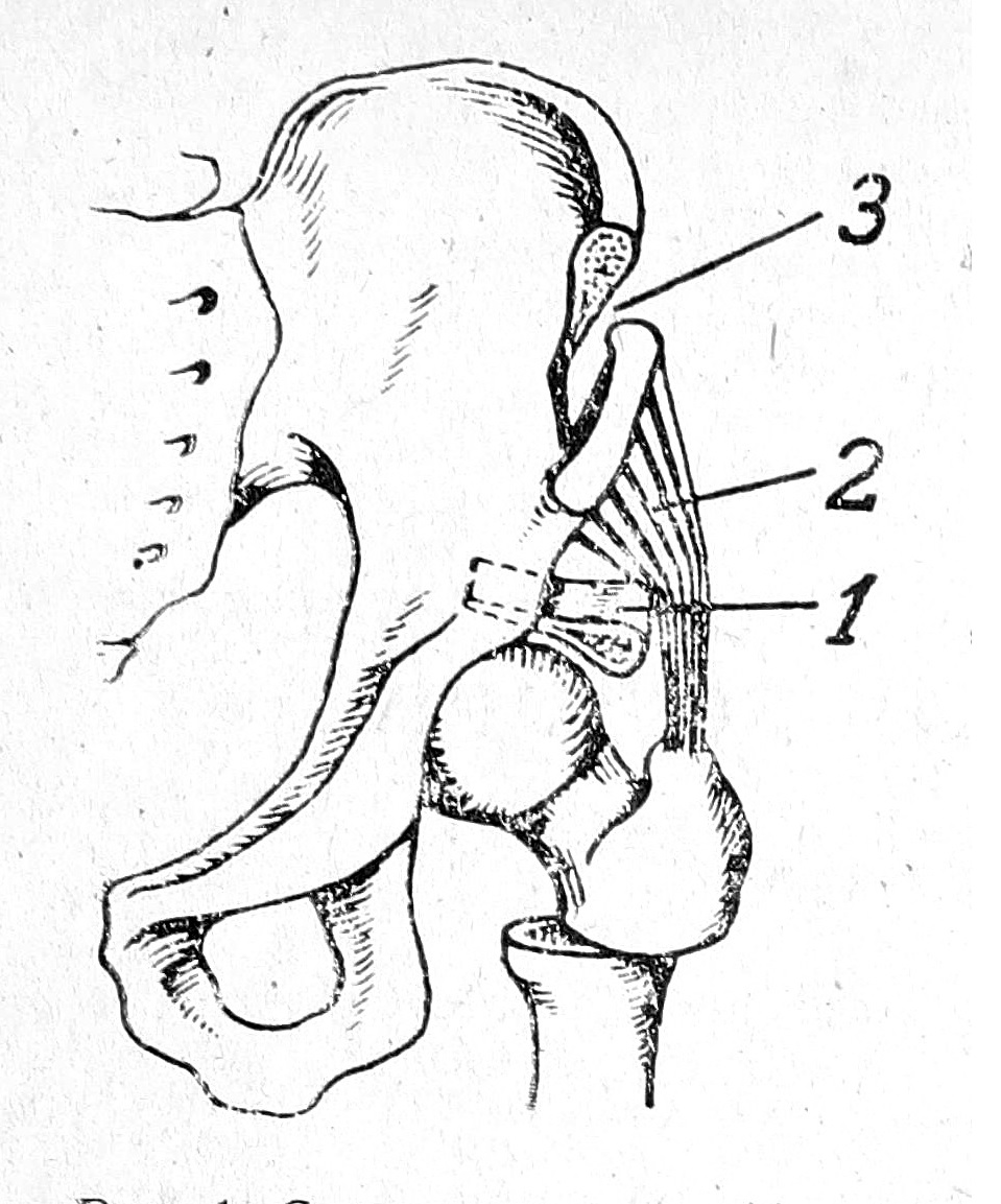 Улучшение походки следует связывать не только с упором головки в навес при ходьбе, но и с безболезненностью сустава. Надо полагать, что существенное значение в улучшении походки и, главное, понижении степени выраженности симптома Тренделенбурга приобретает биомеханический фактор — повышение тонуса пельвиотрохантер- ной мускулатуры. При диспла- стическом коксартрозе с подвывихом головки понижается тонус средней и малой ягодичных мышц вследствие сближения точек их фиксации. Если вновь обратиться к рис- 1, можно убедиться, что за вес служит блоком, через который перекидываются волокна указанных мышц. Благодаря этому улучшаются условия их функционирования.