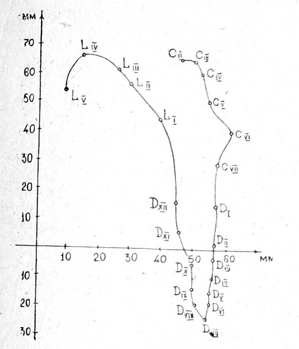 Рис. 2. Диаграмма органической формы вертебральой деформации.