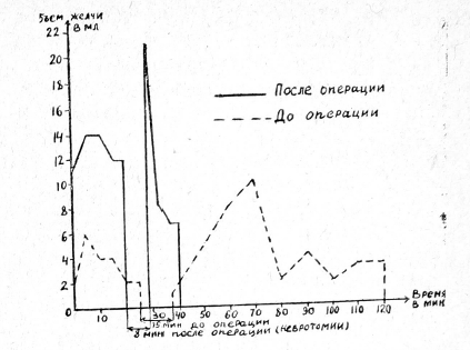 Неврогенная сфинктеротомия, по нашим наблюдениям, снижает остаточное давление на 40%; нормализация его наступает на 3-й день после операции. После обычной же или чистой холецистэктомии дебит и остаточное давление нормализуются на 6—13-е сутки [1].