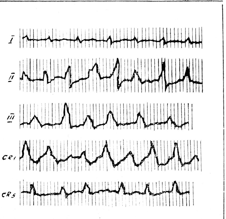 Транзиторная форма трепетания желудочков сердца относится к числу очень редких вариантов нарушений ритма. Опубликованные в этом отношении наблюдения единичны (А. М. Спектор, Дреслер, Капф, Грисбах и др.), ибо в большинстве случаев возникновение мерцания или трепетания желудочков ведет к гибели больного в течение нескольких минут. Еще более редкими являются случаи частого повторения пароксизмов трепетания желудочков, зарегистрированных электрокардиографически.