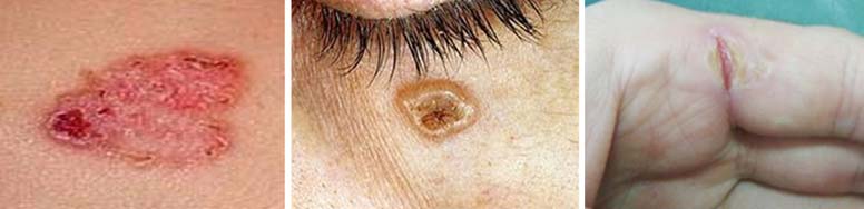 Рис. 2. Предраковые изменения и базально-клеточные формы рака