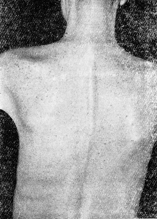 Телосложение правильное, питание пониженное. Кожа сухая, с серовато-бронзовым оттенком, на коже спины имеются отдельные небольшие более пигментированные участки (рис. 1).