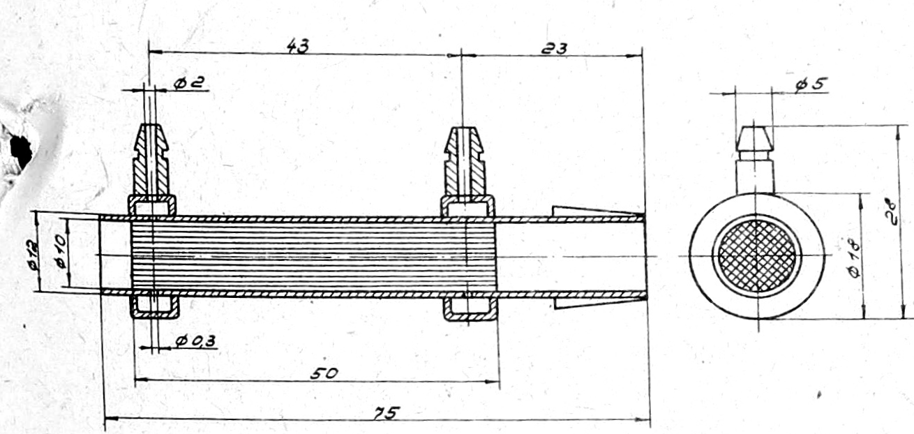 Рис. 1. Принципиальная схема и размеры расходомерной трубки для урофлоуметрии.