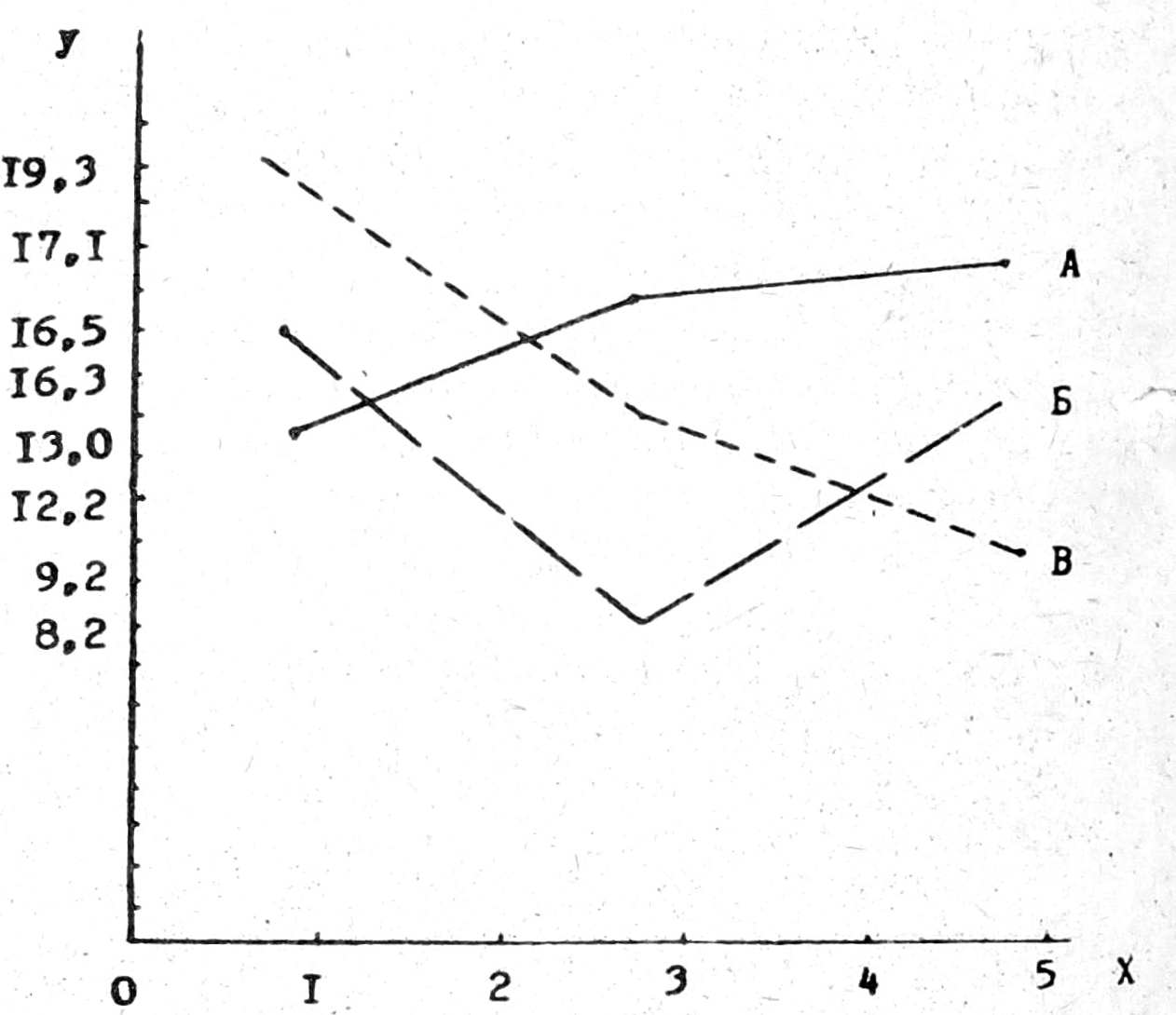 Рис. 1. Динамика ЛИИ перитонеального экссудата при перитоните с благоприятным течением. 1) ЛИИ перитонеального экссудата больного с разлитым перитонитом; 2) с диффузным перитонитом; 3) с местным перитонитом.