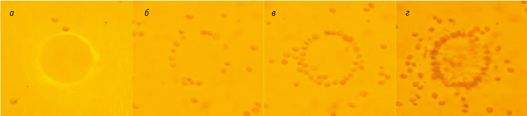 Рис. 1. Пример фиксации клеток дрожжей в форме круга на подложке